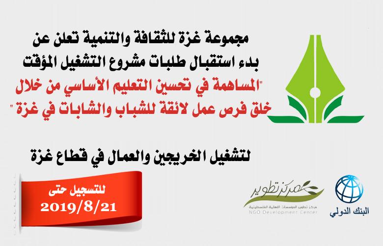 مجموعة غزة للثقافة والتنمية تعلن عن بدء التسجيل لمشروع...